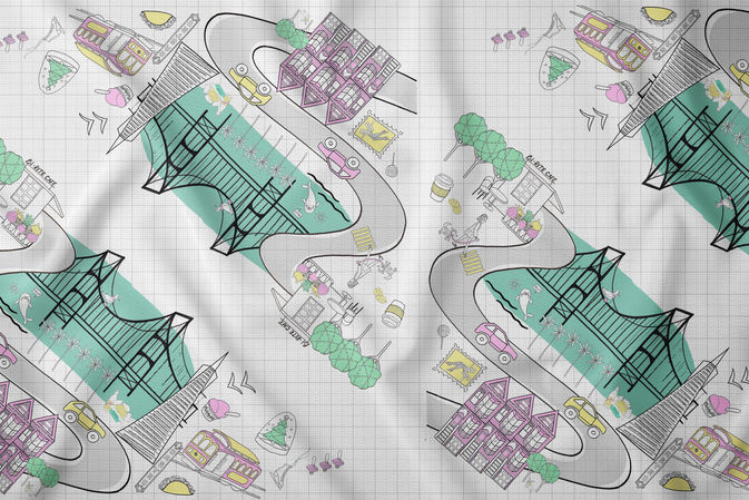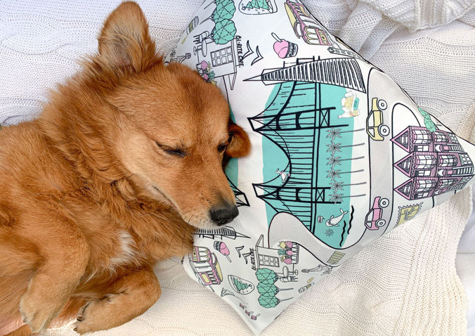 This project has been particularly interesting for me as it it targeted at making dogs, suffering from anxiety issues, experience less stress, which I completely relate to as my own dog dog has this kind of problem as well. The main idea of the project was to create a pillow for dogs, stuffed with specific CBD-infused material, that would have a calming effect, helping a dog relax and sleep better. To make this pillow not only health-beneficial, but also cute and stylish, I decided to depict iconic spots and symbols of San Francisco, using only a couple of colors to remain a minimalist graphic vibe.